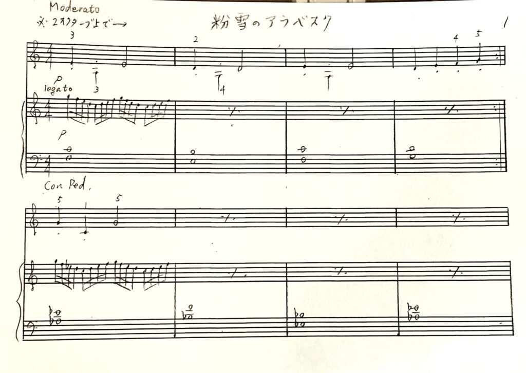 上の楽譜「粉雪のアラベスク」も、そうしてできました。